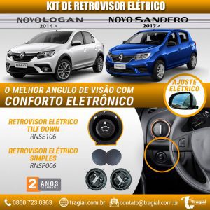 Kit Retrovisor Elétrico Sensorizado ( Tilt Down ) Renault Novo Sandero 2015> Alternativo Tragial