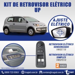 Kit Retrovisor Elétrico Sensorizado ( Tilt Down ) VW Up 2 Portas Tragial