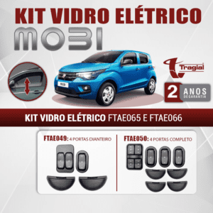 Kit Vidro Elétrico com Sistema Antiesmagamento Mobi 2016 em diante 4 portas completo.