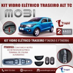 Kit Vidro Elétrico com Sistema Antiesmagamento Fiat Mobi 4 portas traseiro.