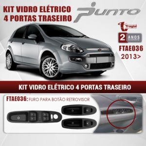 Kit Vidro Elétrico com Sistema Antiesmagamento Fiat Punto 2013 4 Portas Traseiro, com moldura dianteira com furo para retrovisor.