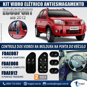 Kit Vidro Elétrico com Sistema Antiesmagamento Ford Ecosport até 2012 4 Portas Dianteiro Tragial