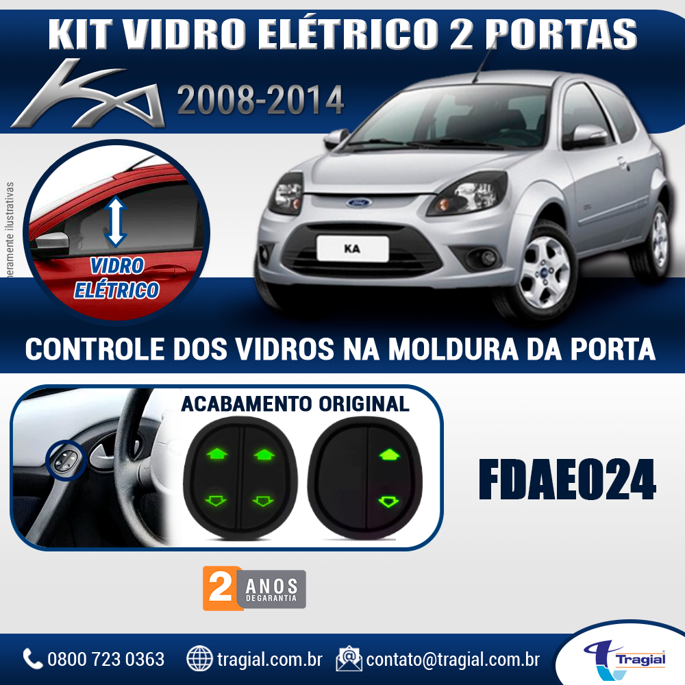 Kit Vidro Elétrico com Sistema Antiesmagamento Ford KA 2008-2014 2 Portas Tragial