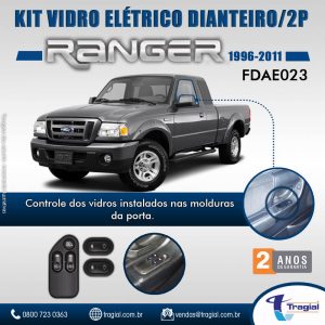 Kit Vidro Elétrico com Sistema Antiesmagamento Ford Ranger 1996-2011 4 Portas Dianteiro Tragial