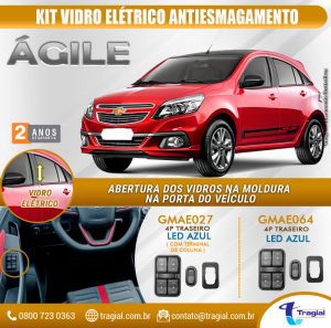 Kit Vidro Elétrico com Sistema Antiesmagamento GM Chevrolet Ágile 2011-2014 4 Portas Traseiro Tragial