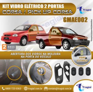 Kit Vidro Elétrico com Sistema Antiesmagamento Gm Chevrolet Corsa 2 Portas e Corsa Pick up Tragial