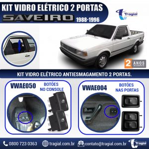 Kit Vidro Elétrico com Sistema Antiesmagamento Volkswagen Saveiro 1988-1996 Tragial